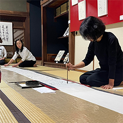 半切を6枚継いで8メートルの横長に古今和歌集の序文を前半を古典の仮名、後半を現代の作品にレンジしてみました。
