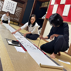 里山に吹く秋風も心地よい頃、焼き物の町、益子「ほんたく」の140年の歴史ある古民家で、社中の展覧会と同時に「書と音のパフォーマンス」をしました。